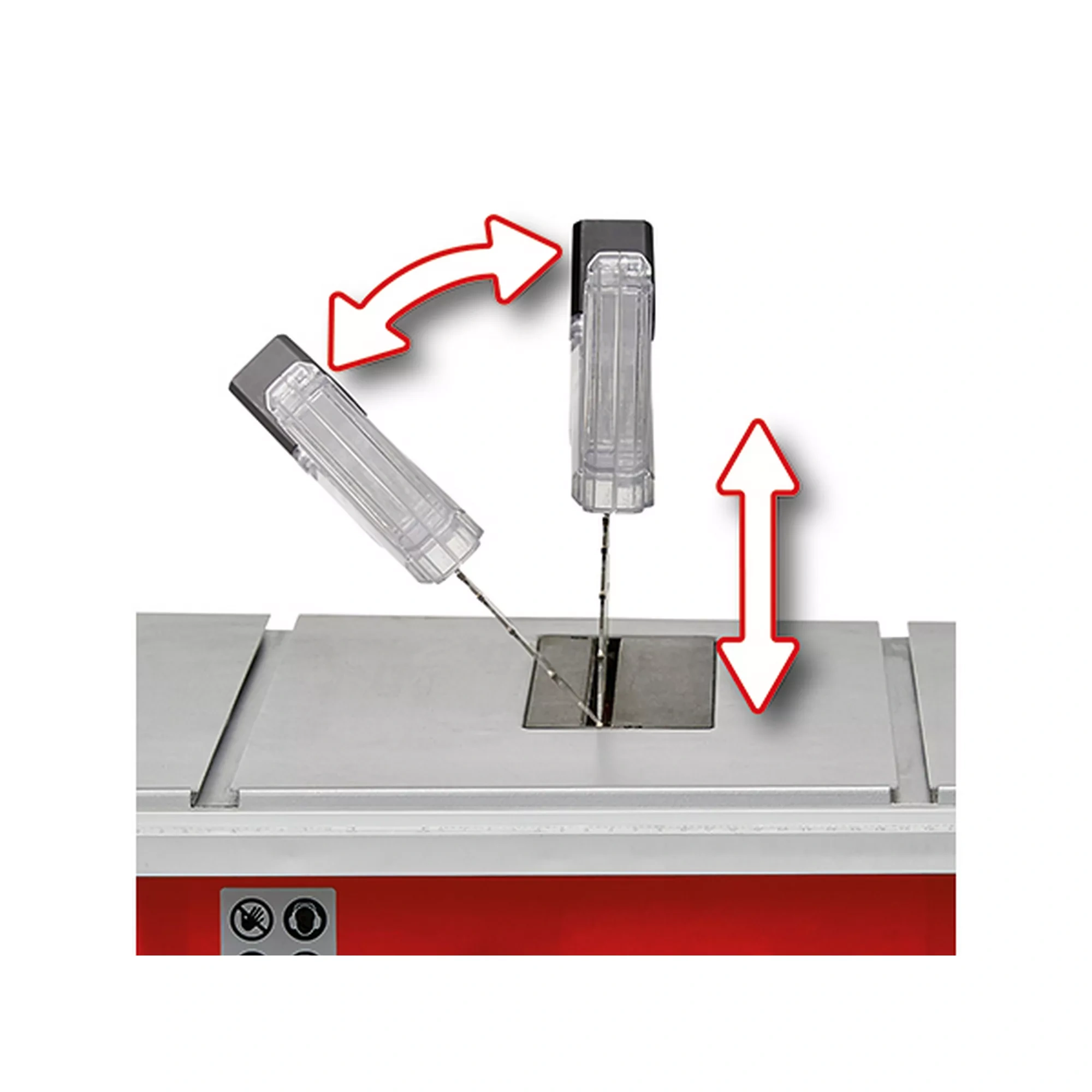 Staubabsaugung & Arbeitsplatz | Den Absauganschluss nach Möglichkeit mit einem geeigneten Staub- oder Werkstattsauger verbinden, um Staubentwicklung und Späneaufkommen deutlich zu reduzieren. Den Tisch regelmässig von Sägemehl befreien, damit das Werkstück plan aufliegt und sicher geführt werden kann. Für eine ausreichende Beleuchtung des Arbeitsbereichs sorgen, um Schnittlinie und Sägeblatt gut im Blick zu behalten. |
