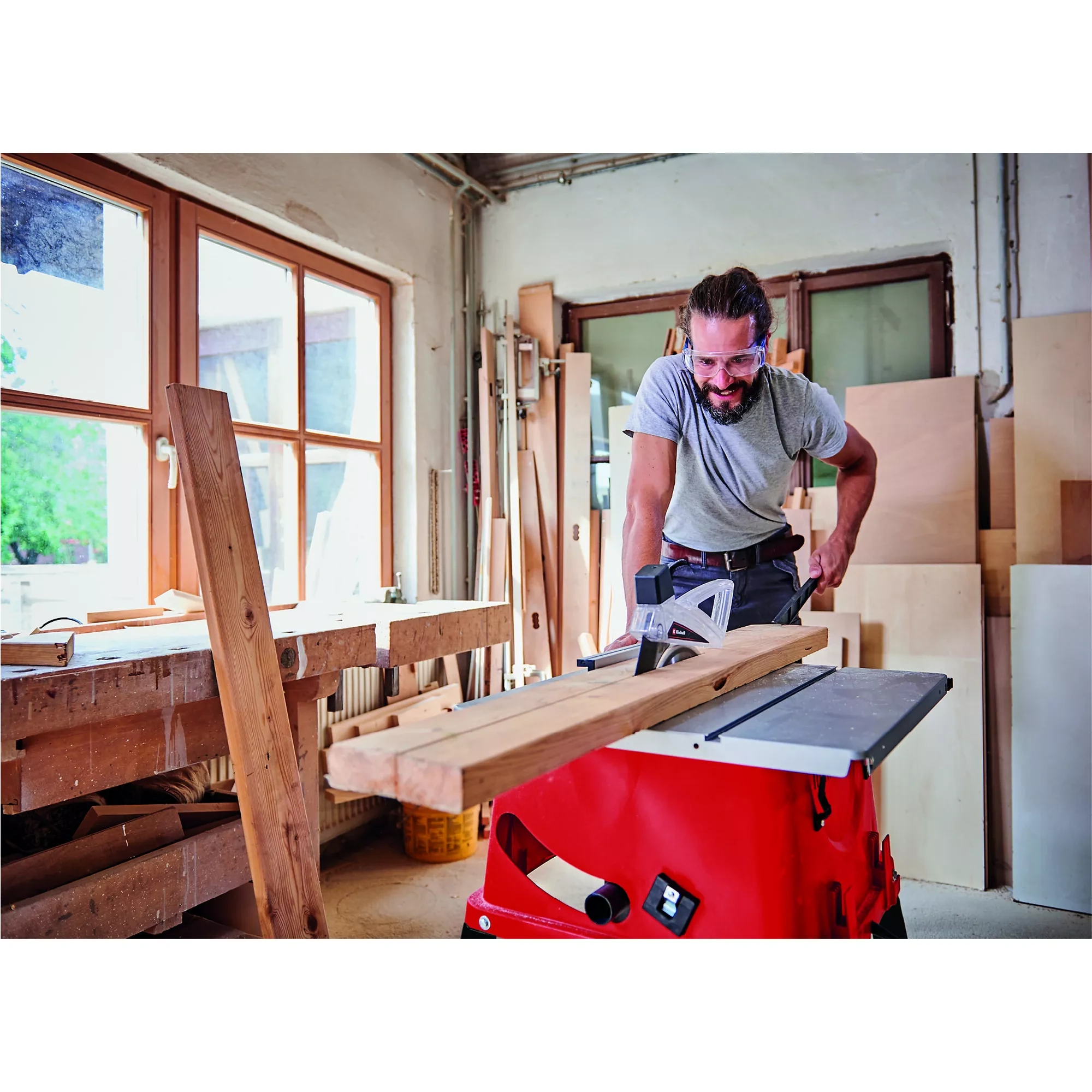 Nutzung & Einstellungen | Schnitthöhe über die stufenlose Höhenverstellung dem Werkstück anpassen – ideal ist ein leicht überstehendes Sägeblatt. Parallelanschlag und Führungshilfen exakt einstellen, bevor der Schnitt gestartet wird. Bei neuen Materialien zunächst einen Probeschnitt an einem Reststück durchführen, um Schnittqualität und Blattwahl zu prüfen. Nur Holz und dafür geeignete Holzwerkstoffe zuschneiden und die maximalen Materialabmessungen laut Herstellerangaben beachten. |
