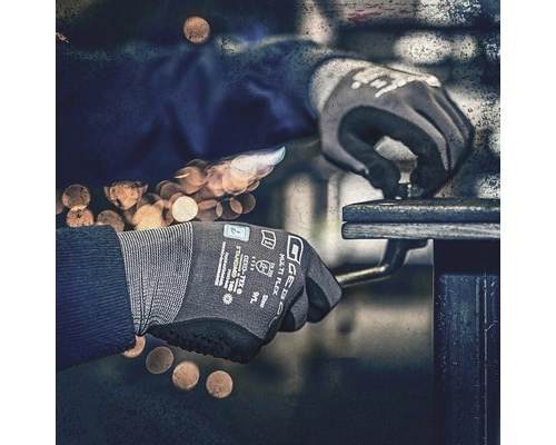 Highlights: Hervorragender Grip durch Nitrilnoppen, angenehme Atmungsaktivität, öl- und fettbeständig, sehr gutes Tastgefühl für präzise Arbeiten, ideal für Profis und Heimwerker.