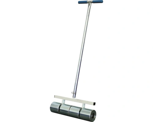 Highlights: Vier walzenbasierte Druckverteilung, stabile Stahlkonstruktion, abnehmbarer Stiel, Transportrollen zum Schutz des Werkzeugs, ideal für präzise Bodenverlegung.