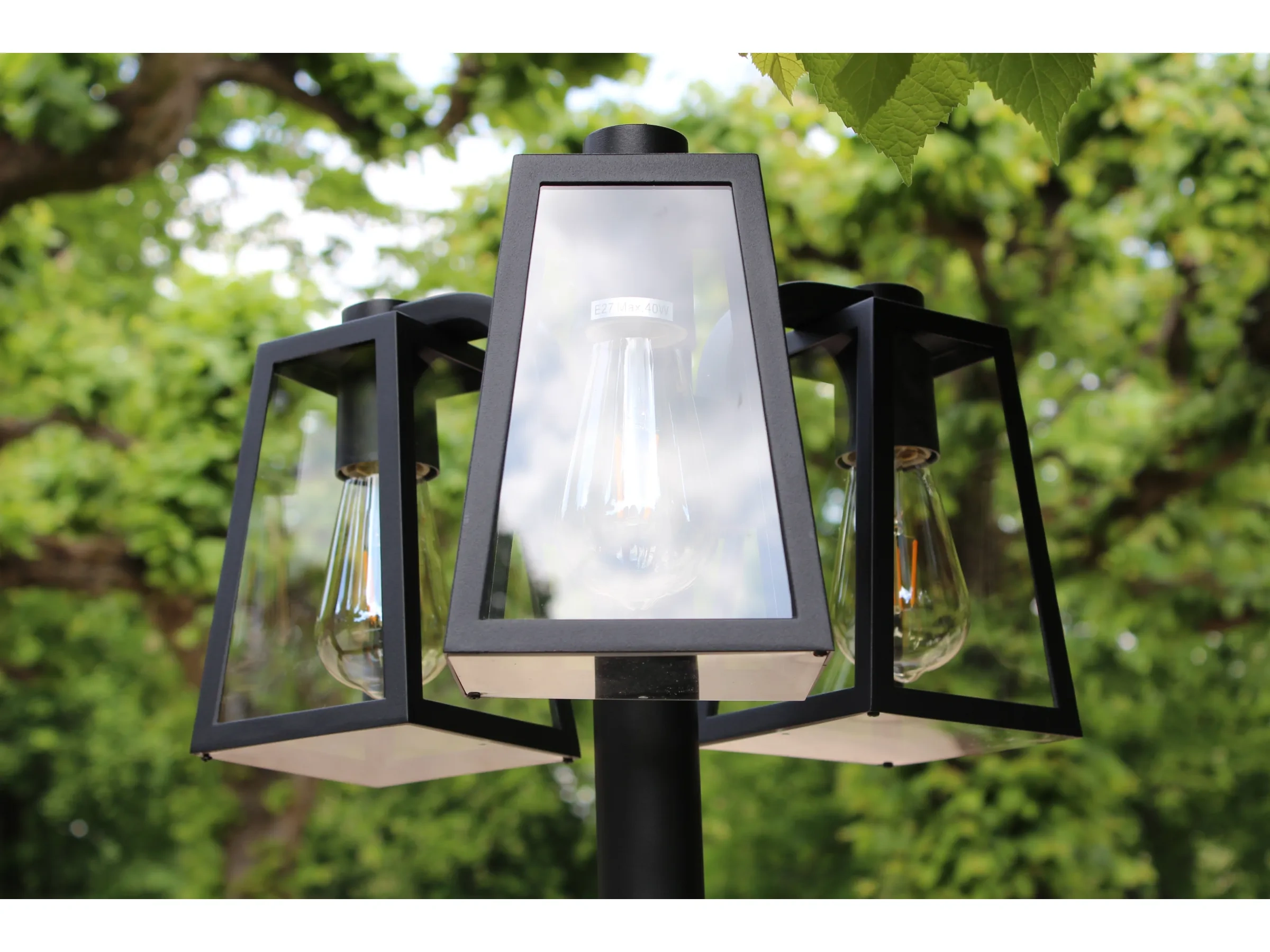 Highlights: Eleganter Kandelaber im klassischen Stil, wetterfeste Materialien, klare Lichtverteilung durch Glaskörper, ideal für Wege, Einfahrten und Terrassen.