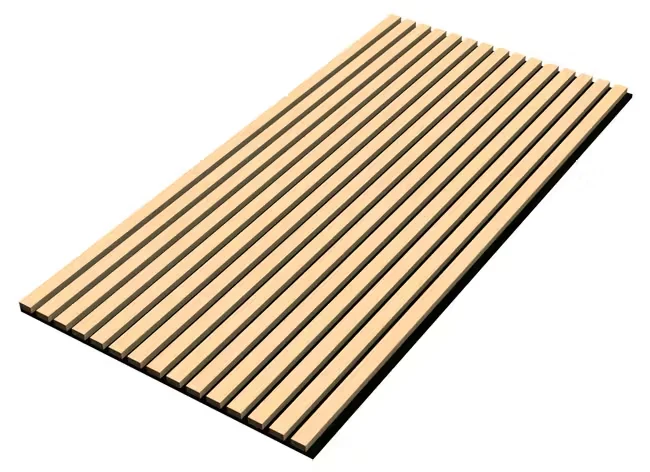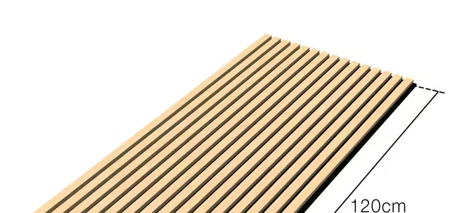 Jede Platte besteht aus furnierten MDF-Lamellen auf einer Akustikfilz-Befestigungsplatte. Die Paneele lassen sich bei Bedarf individuell zuschneiden, mit Schrauben oder Kleber montieren und flexibel kombinieren. Mit einer Schall-Absorptionsrate von NRC 0,8 (Absorberklasse B) sind sie eine praktische Lösung, um Nachhall zu reduzieren und den Raumklang spürbar zu optimieren.