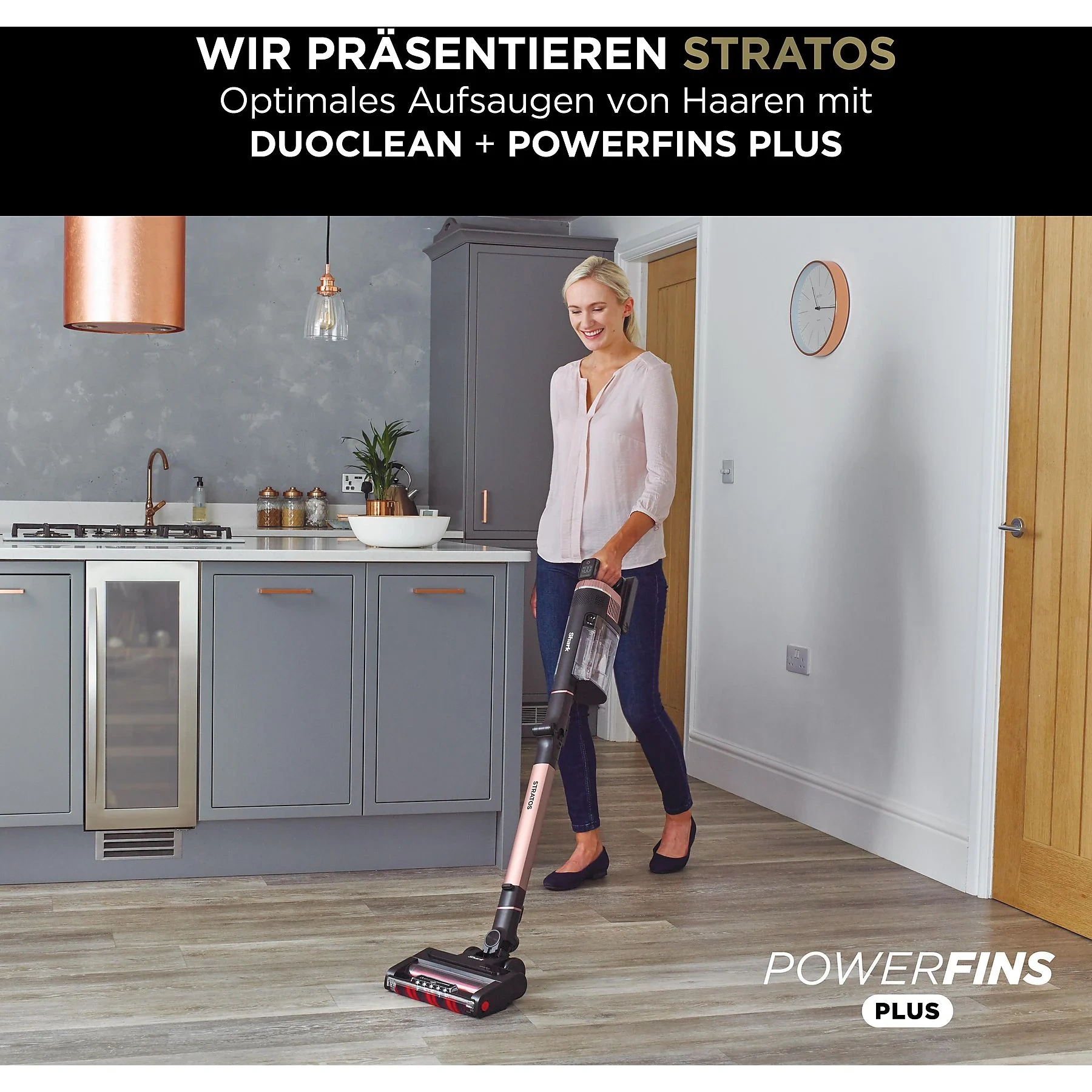 SHARK IZ400EU Stratos – Stielsauger, Akkubetrieb, Grau/Roségold
