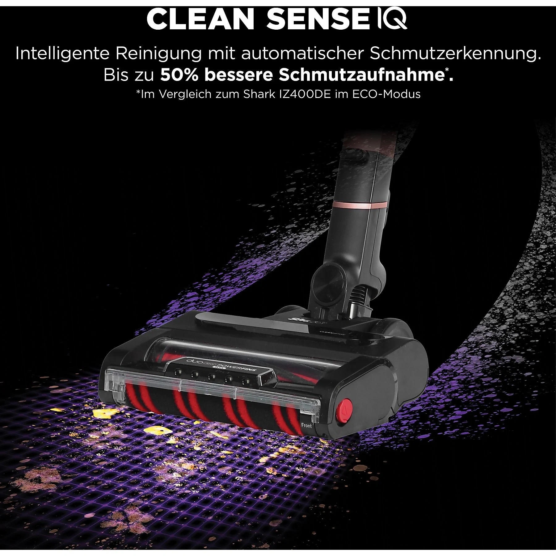 Dank Clean Sense iQ erkennt der Staubsauger automatisch den Verschmutzungsgrad. Bis zu 60 Minuten Laufzeit im ECO-Modus und LED-Beleuchtung an der Bodendüse sorgen für saubere Böden auch an schwer zugänglichen Stellen.