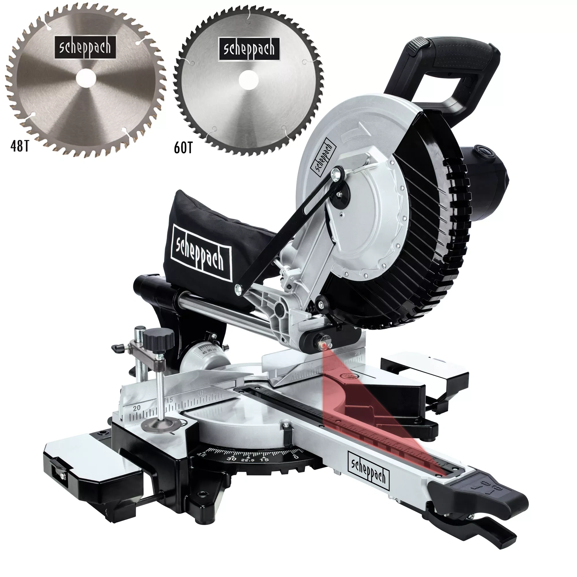 Produktinformationen "Scheppach Kapp- und Zugsäge MST 254 Black Edition – 2.000 W, mit 2 Sägeblättern"