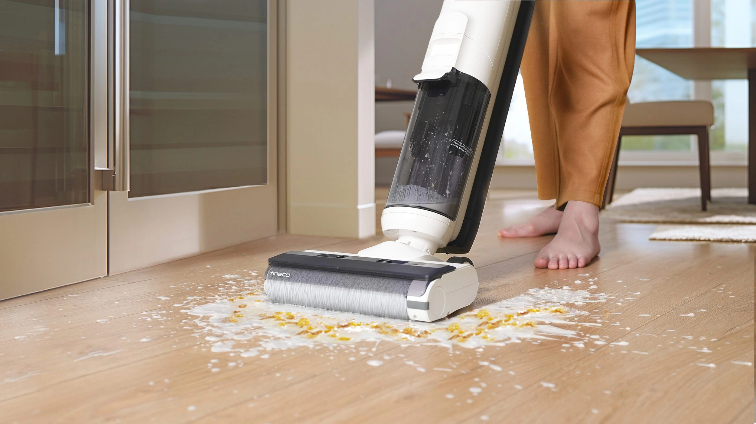Der kabellose Tineco iFLOOR 5 ist ein moderner 2-in-1 Nass-Trockensauger für die schnelle und gründliche Reinigung versiegelter Hartböden. Er saugt und wischt in einem Arbeitsgang und spart so spürbar Zeit im Haushalt. Dank verbesserter Kantenreinigung erreicht die Bürstenwalze mit einem Abstand von unter ca. 0,5 cm selbst Bereiche entlang von Fussleisten und in Ecken, die mit klassischen Geräten oft unberührt bleiben – ideal für Fliesen, Steinböden, Parkett, Laminat und ähnliche Oberflächen.