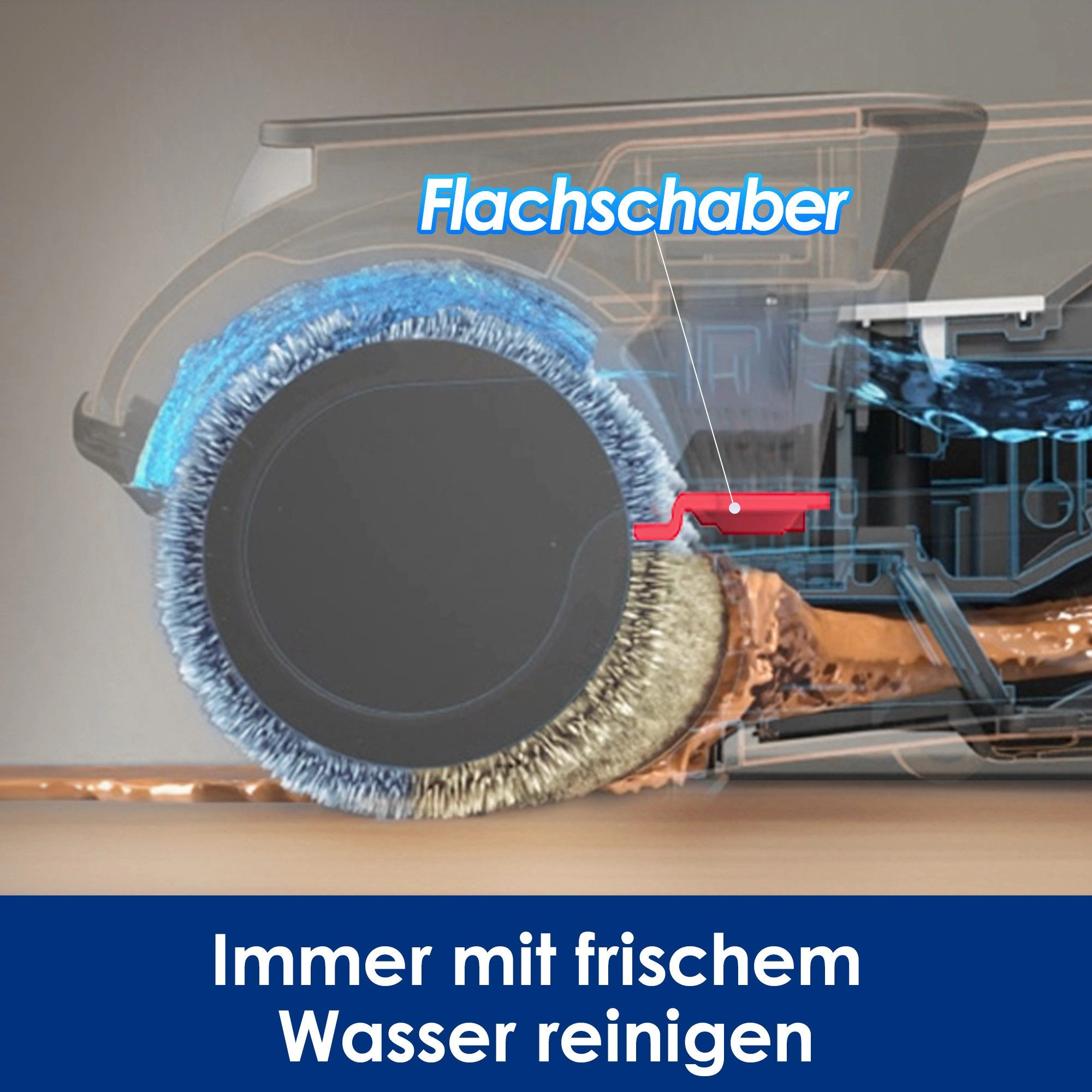Saugen & Wischen in einem Schritt • Frischwassersystem mit Doppeltank • Freihändige Selbstreinigung & Kantenreinigung
