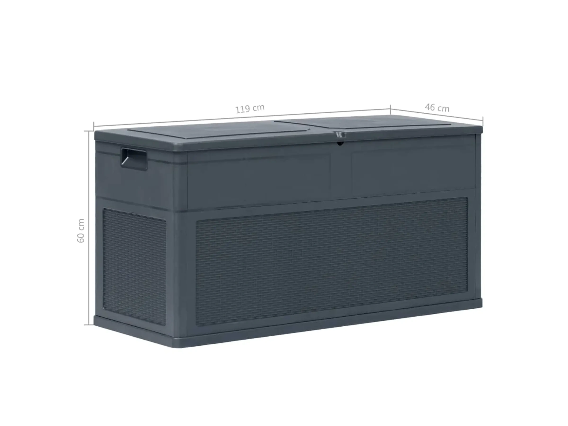 Die vidaXL Garten-Aufbewahrungsbox bietet eine stilvolle Lösung zur Aufbewahrung von Kissen, Decken, Spielzeug oder Werkzeugen. Robust und wetterfest aus Kunststoff gefertigt, eignet sie sich für Innen- und Außenbereiche gleichermaßen.